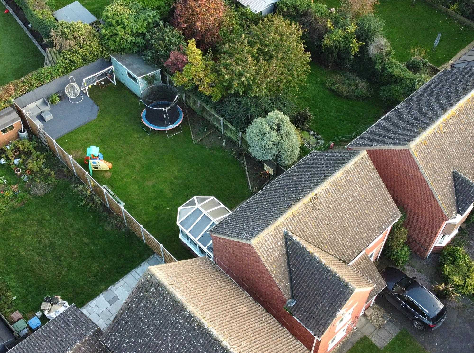 The rear garden has a paved patio/seating area, raised decked area to rear, hard stand for shed/workshop, boarders of plants and shrubs, spacious lawned area. We feel this property is positioned on an ideal size plot for the Grange Farm development.