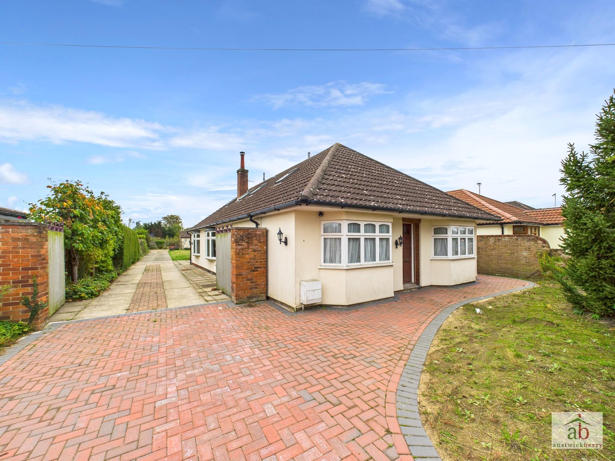 A chance to acquire a rarely available & individually designed FOUR BEDROOM detached chalet-bungalow. Set on an ample plot measuring just under half an acre with an assortment of garages, outbuildings and greenhouses.