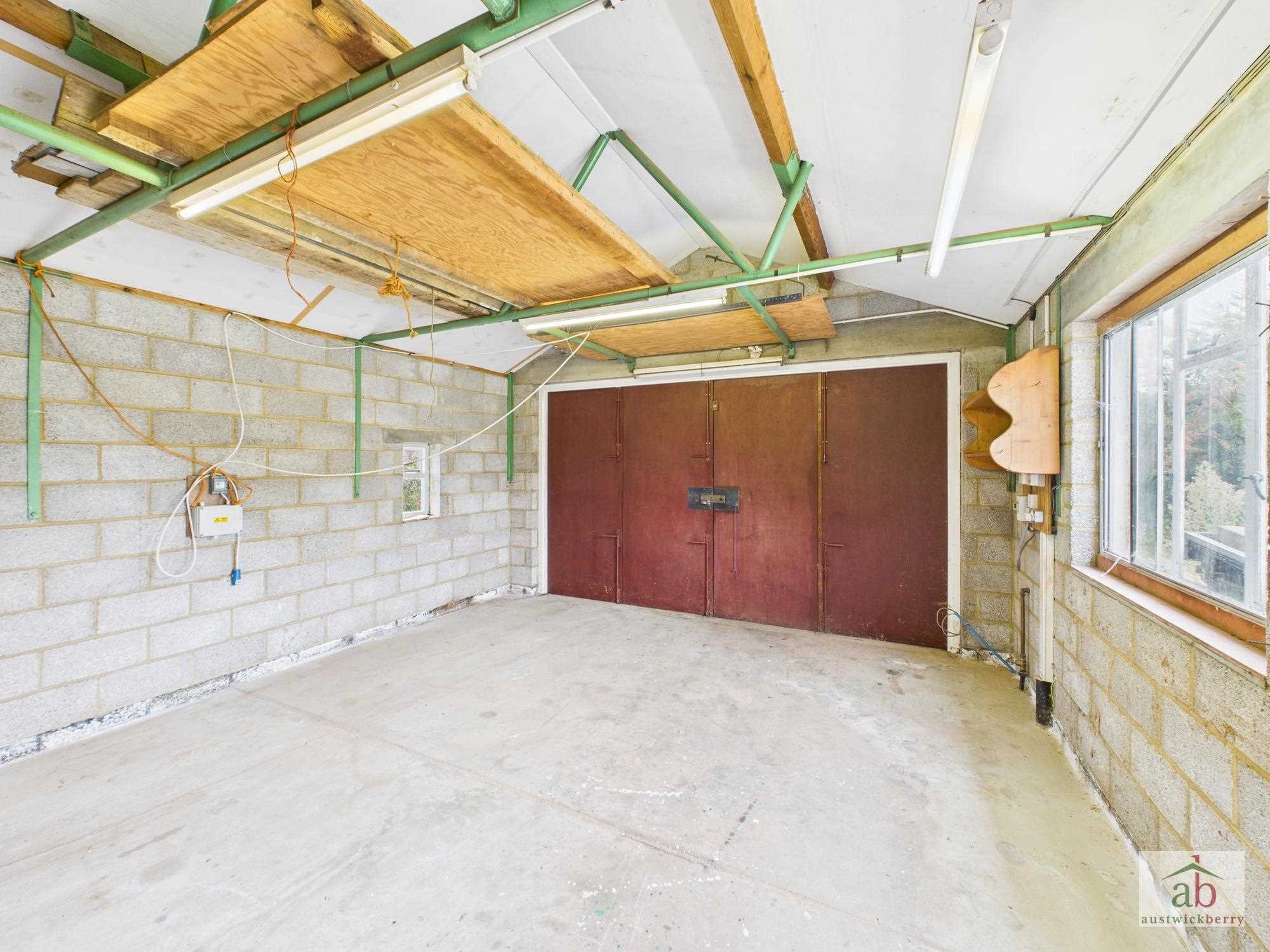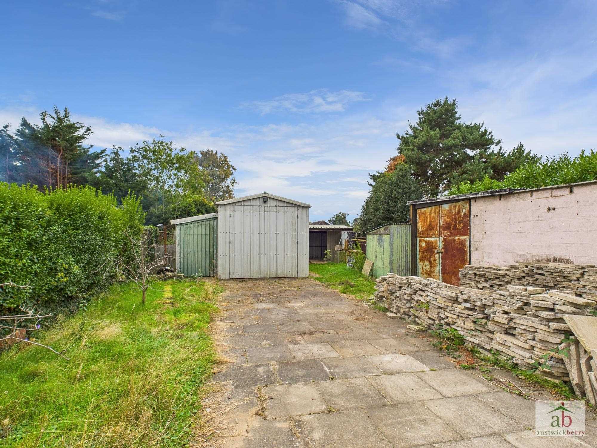 To the front there is a blockpaved parking area with double gates leading to a concrete driveway to the side of the property. Rear garden comprising of a spacious lawn with borders of plants and shrubs. Detached double garage with vehicular access, side facing windows (power and lighting connected). Three additional outhouses providing an array of storage or work shop areas. Additional hardstand parking areas.