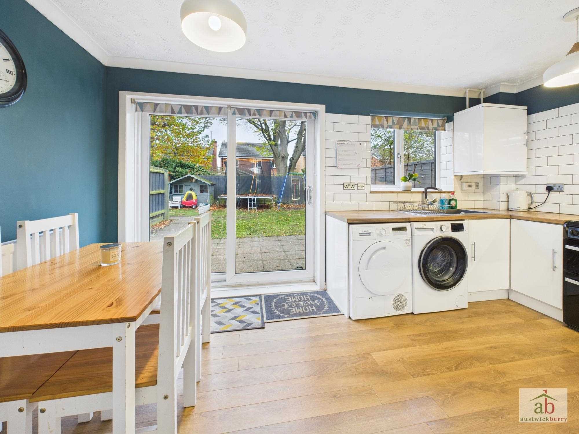 Double glazed window to rear, double glazed sliding door onto garden, work surface with fitted matching wall and base units above and below, space for washing machine and tumble dryer, space for cooker, stainless steel sink and drainer unit with stainless steel mixer tap, tiled splashbacks, space for dining table, double radiator.