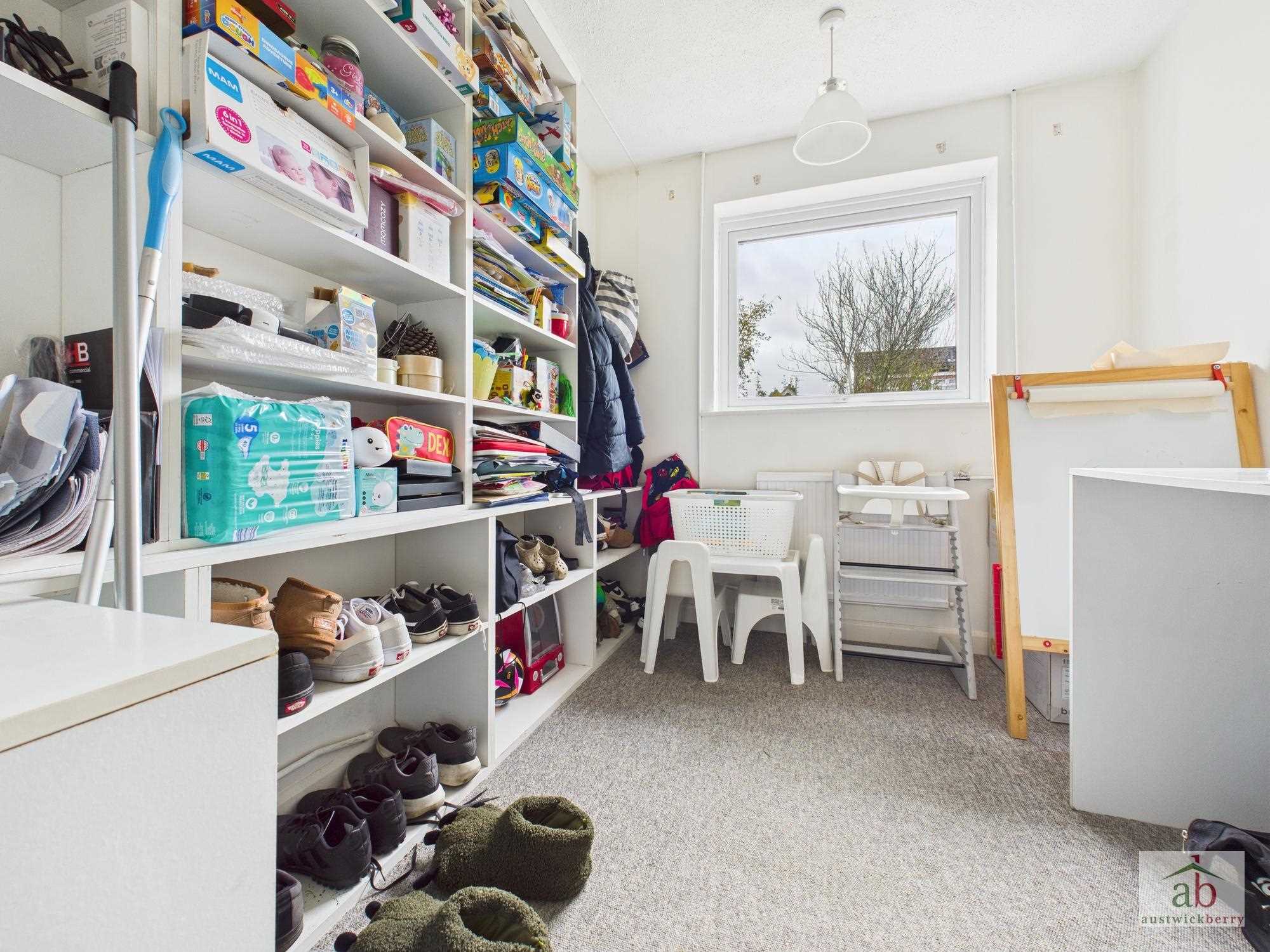 Double glazed door to entrance hallway, single radiator, stair flight to first floor, large built in cupboard.