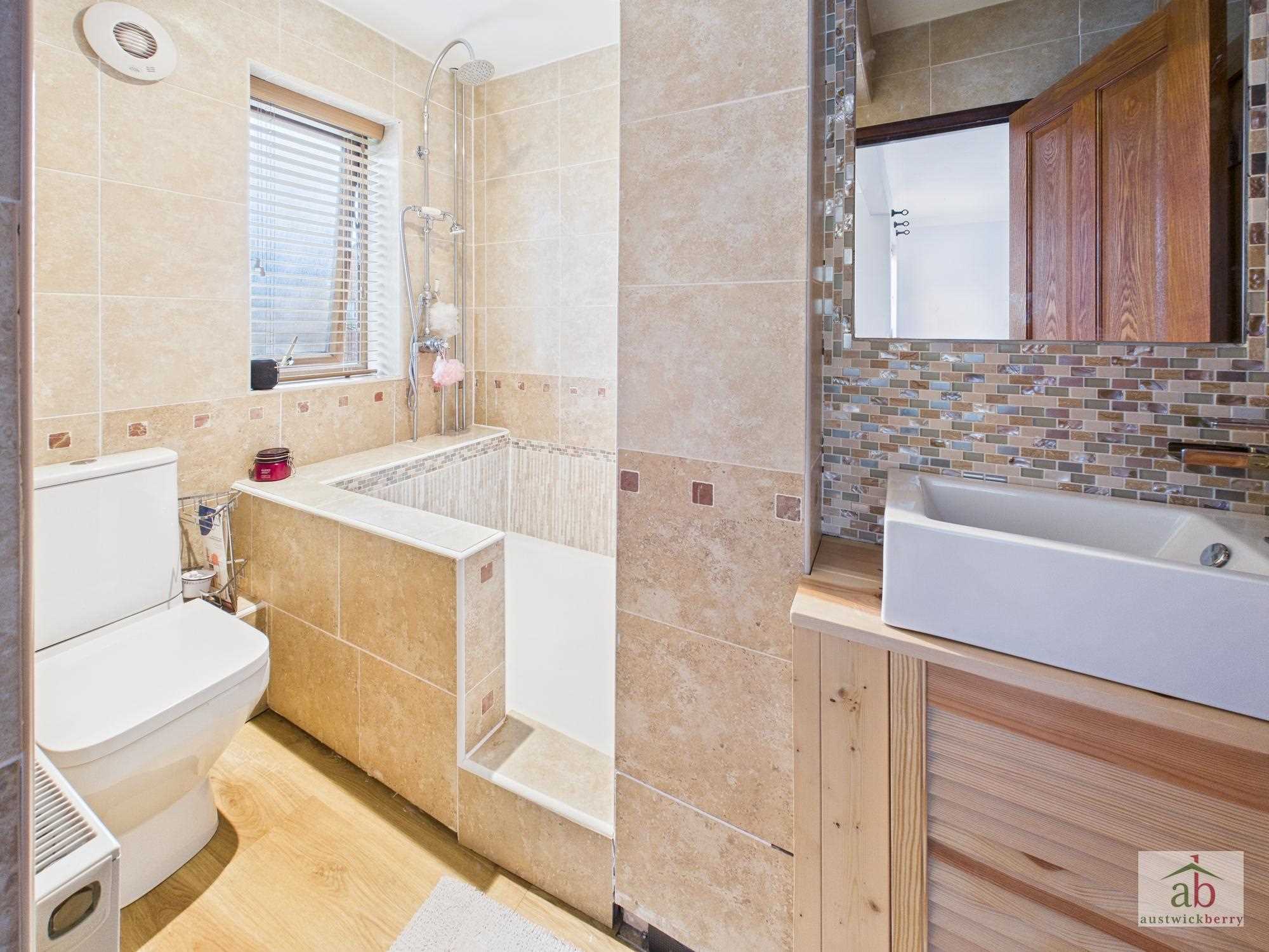Double glazed rear facing window, walk-in shower with tiled splash backs, heated towel radiator and tiled floor.