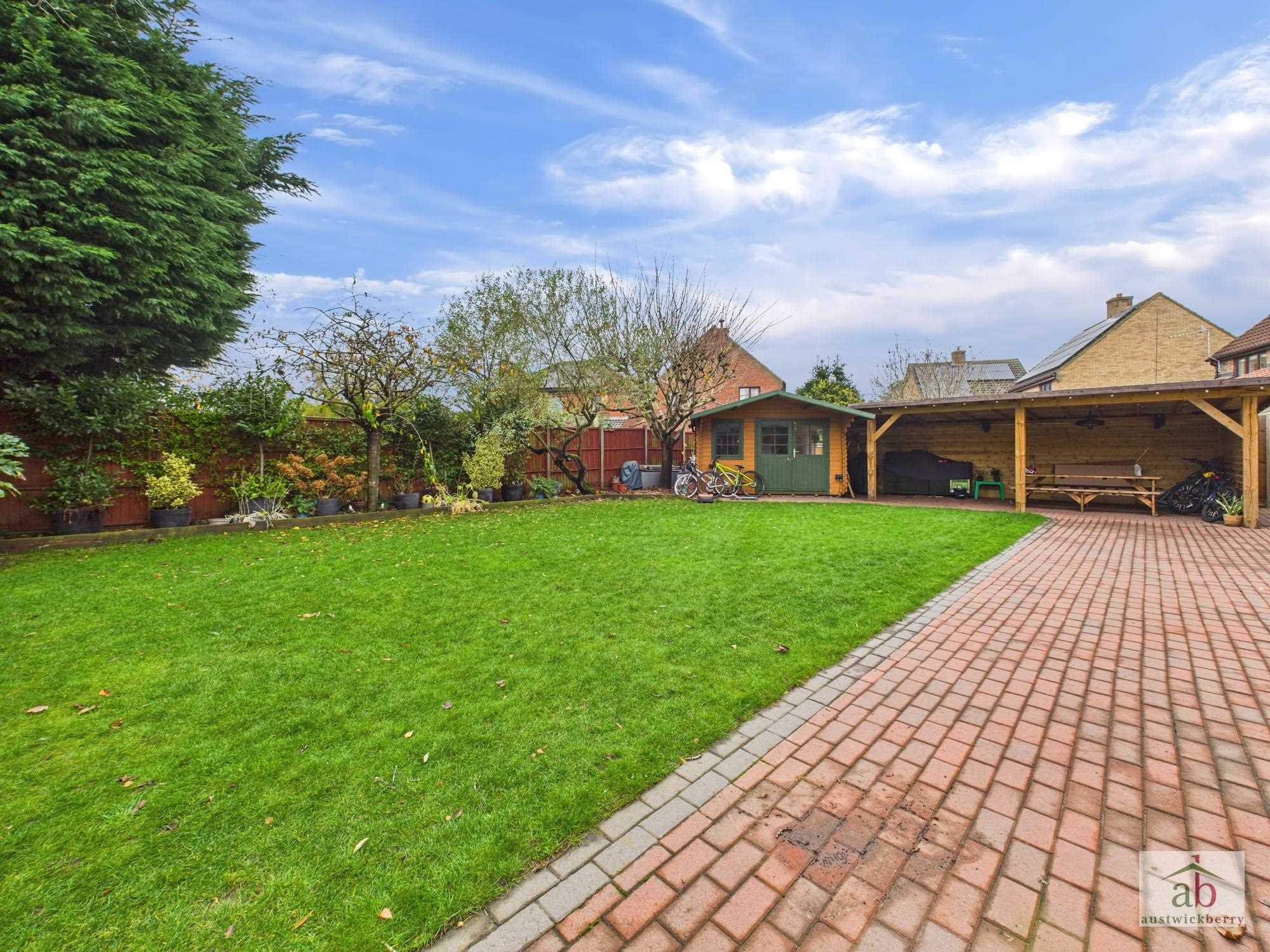 Spacious rear garden with block paved patio area, private rear access door into garage, spacious summerhouse/workshop, spacious cupboard, al fresco seated dining area, borders of plants and shrubs, property also has the added benefit of solar panels providing an income throughout the year.
