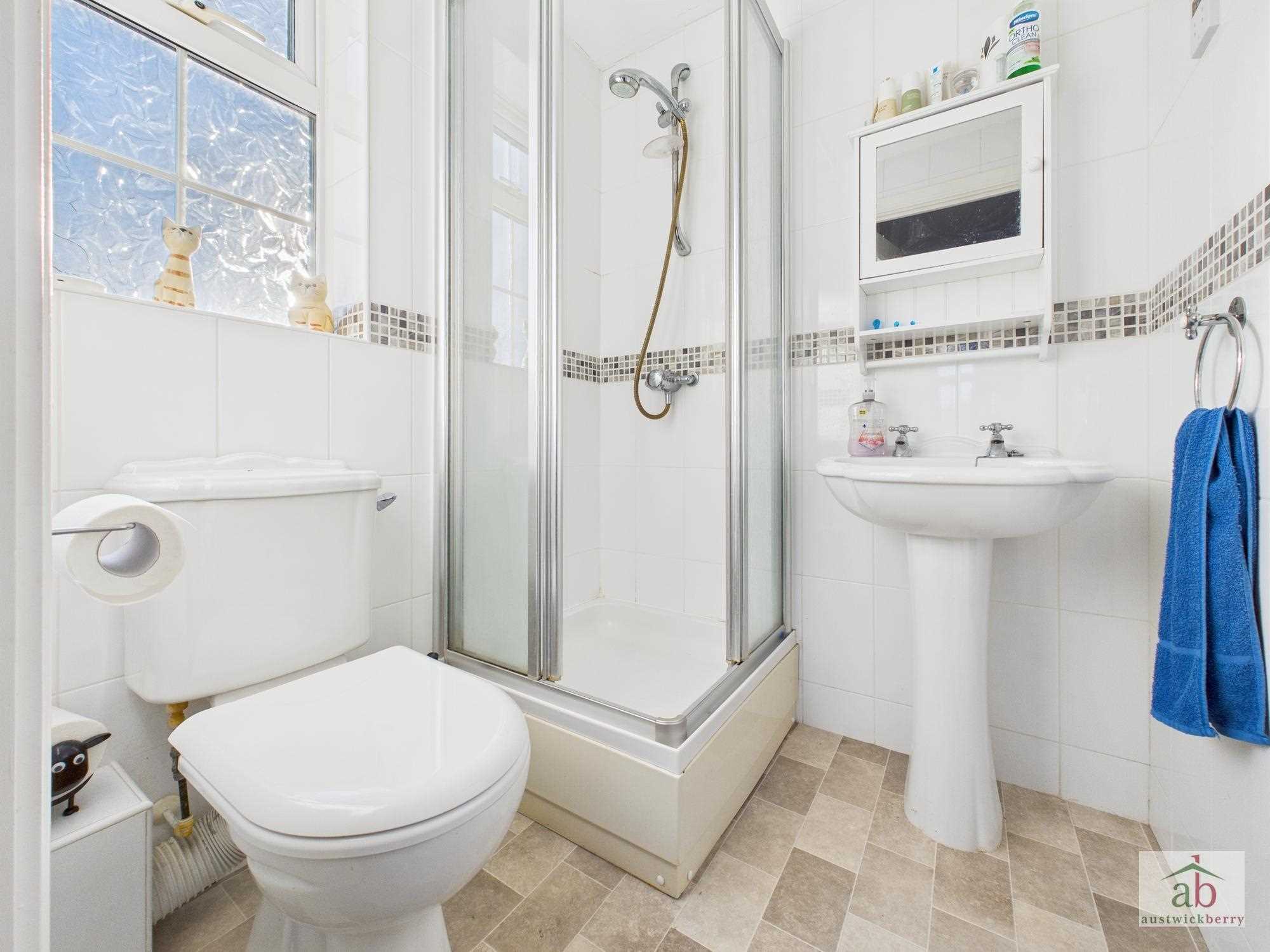 Double glazed window to front, single radiator, low level wc, quadrant shower, half tile surround, pedestal hand wash basin.