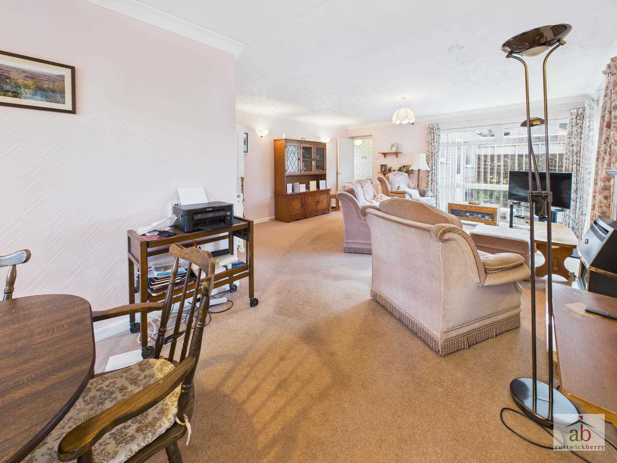 Feature gas fireplace (not tested) with wooden mantel surround, double glazed sliding patio door onto the garden, double glazed window to side, single radiator.
