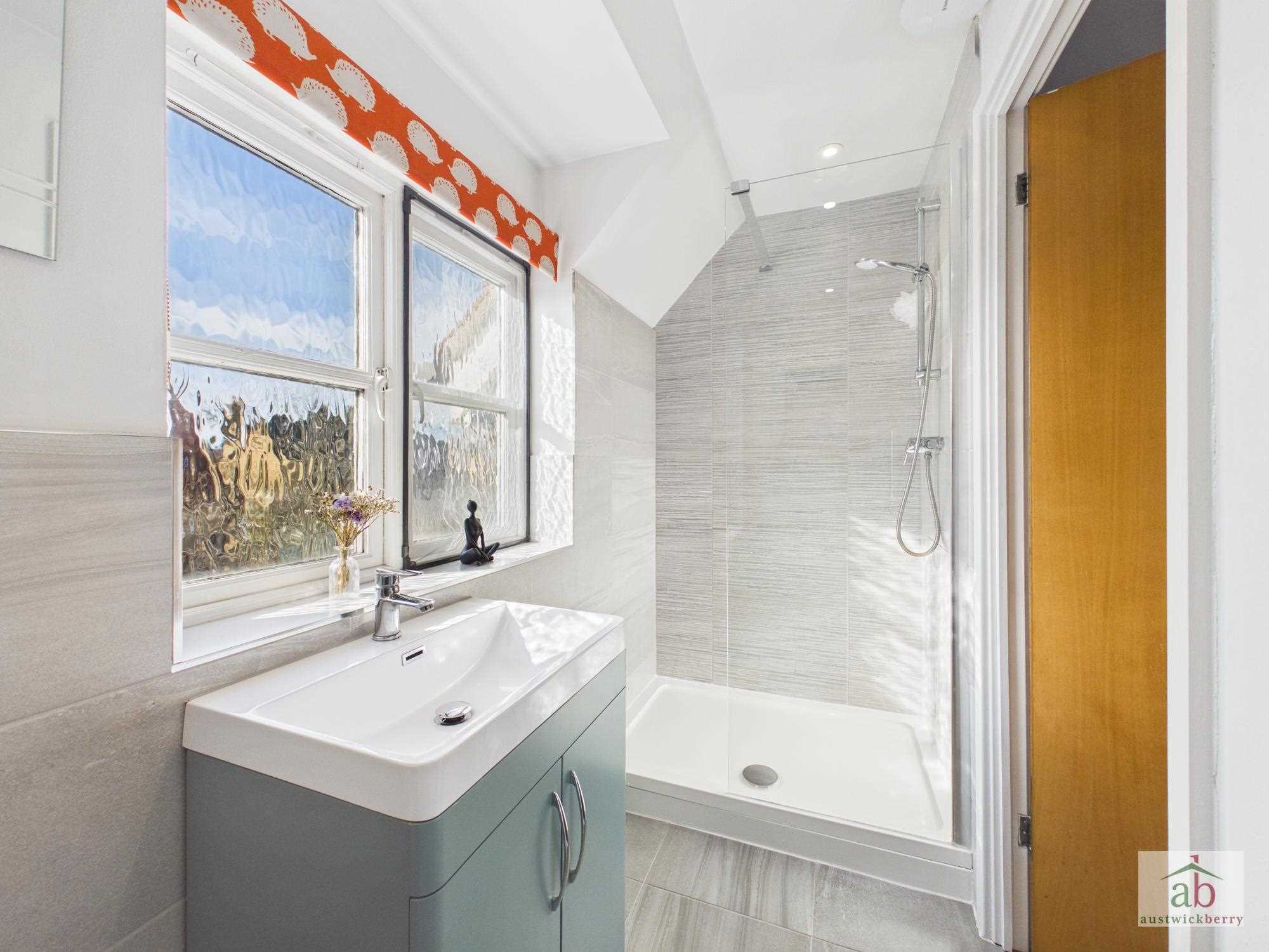 Double glazed window to rear, walk in shower cubicle, vanity hand wash basin with vanity cupboard under, low level wc, heated towel radiator, luxury wall tiles, luxury flooring.