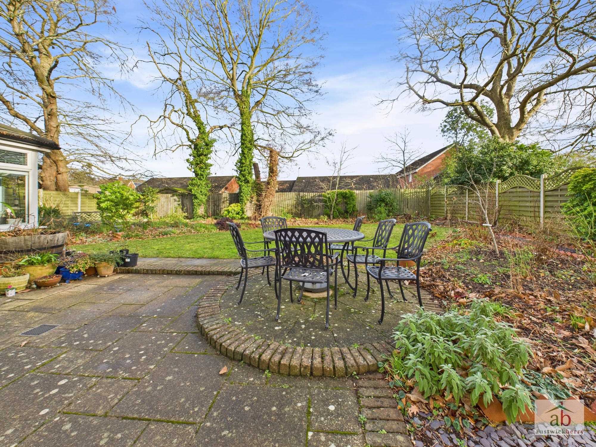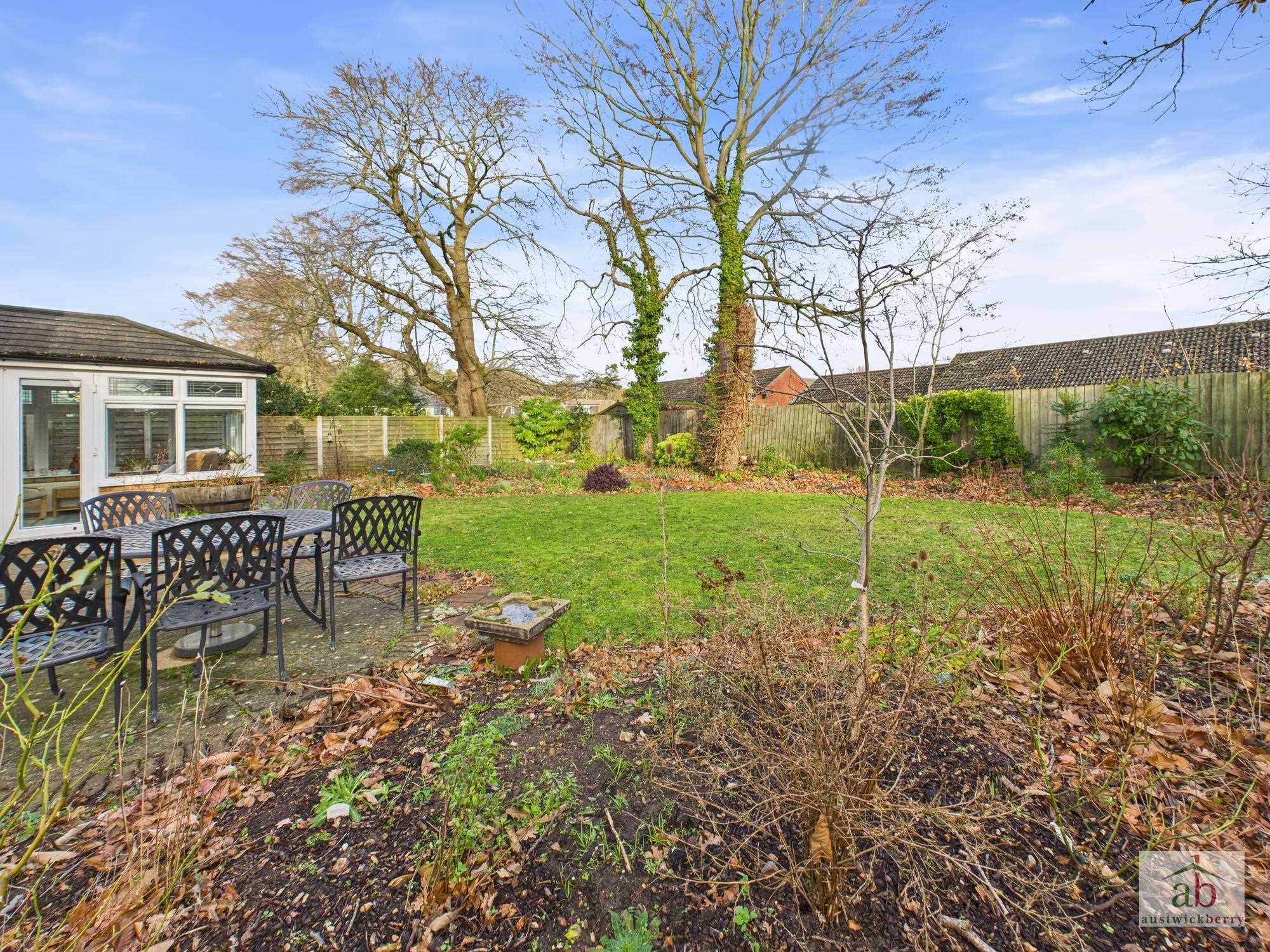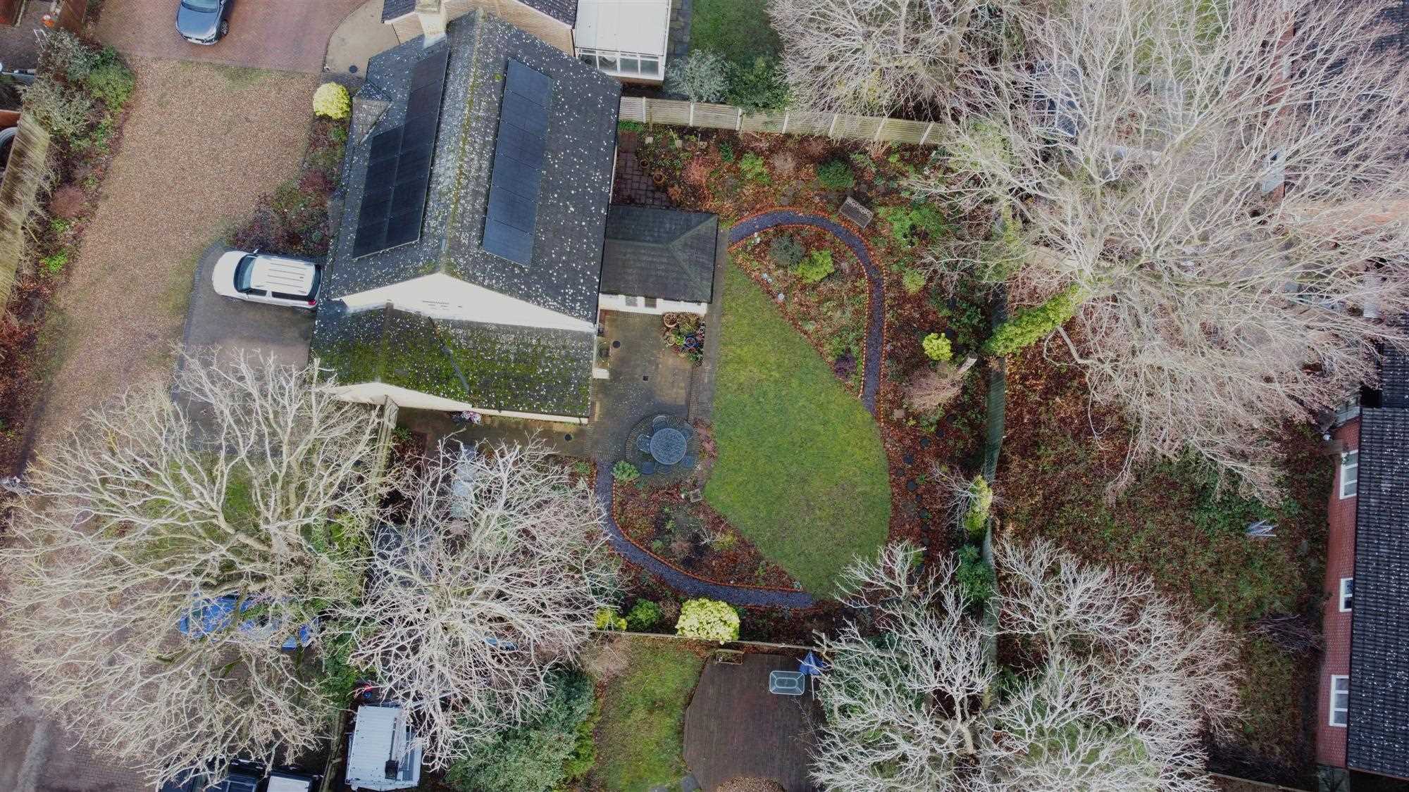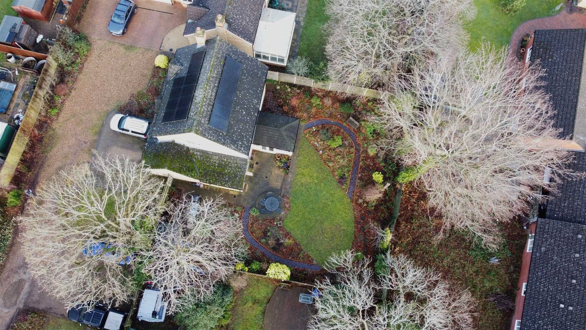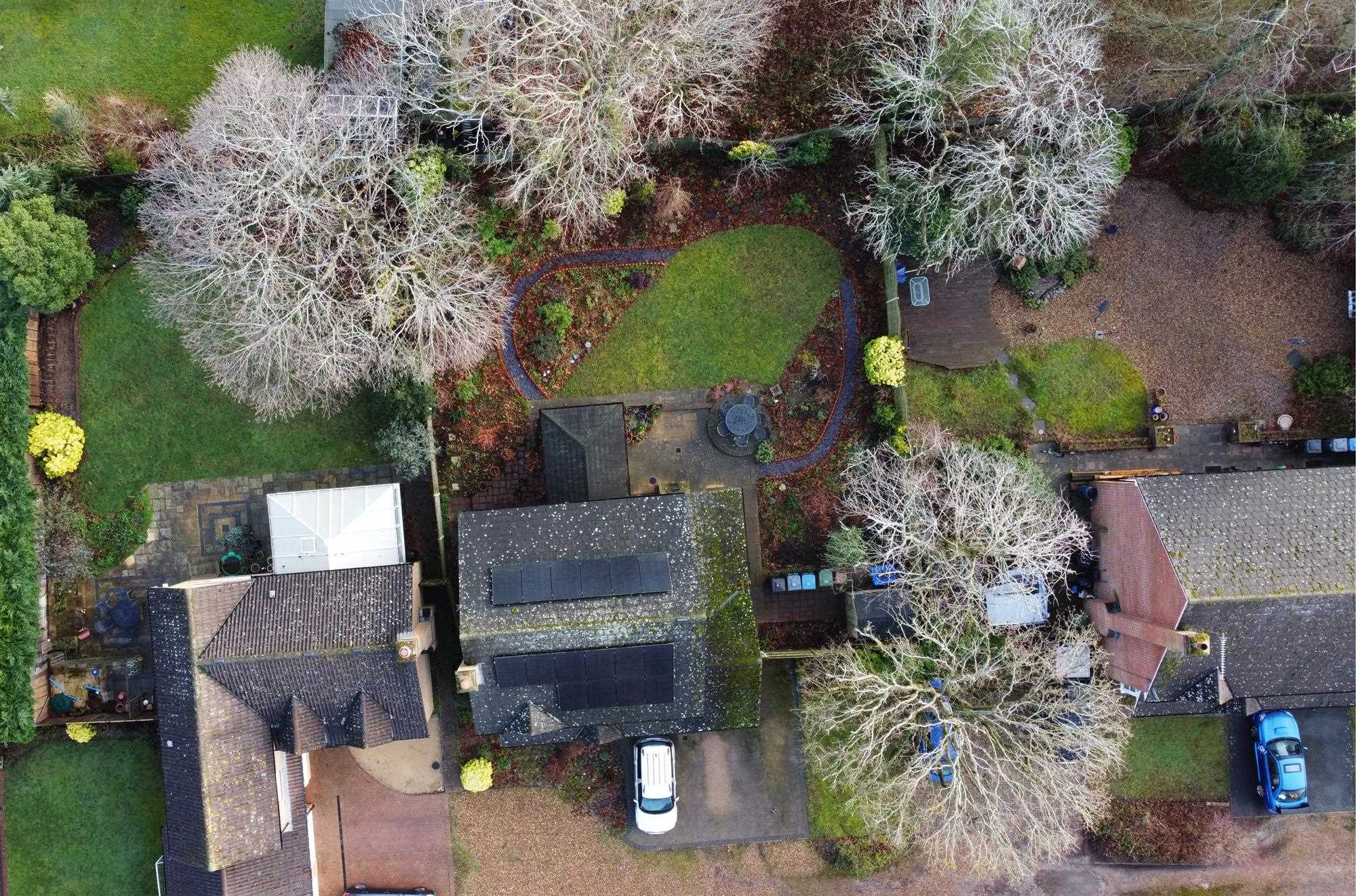 Attractive gardens to front, large triple width driveway, further lawned side plot. Double width garage with up and over doors (power and light connected). Side access to large lawned rear garden, well maintained and well kept, patio area, well stocked with flowers and shrubs, enclosed by panel fencing, un overlooked. Solar panels.