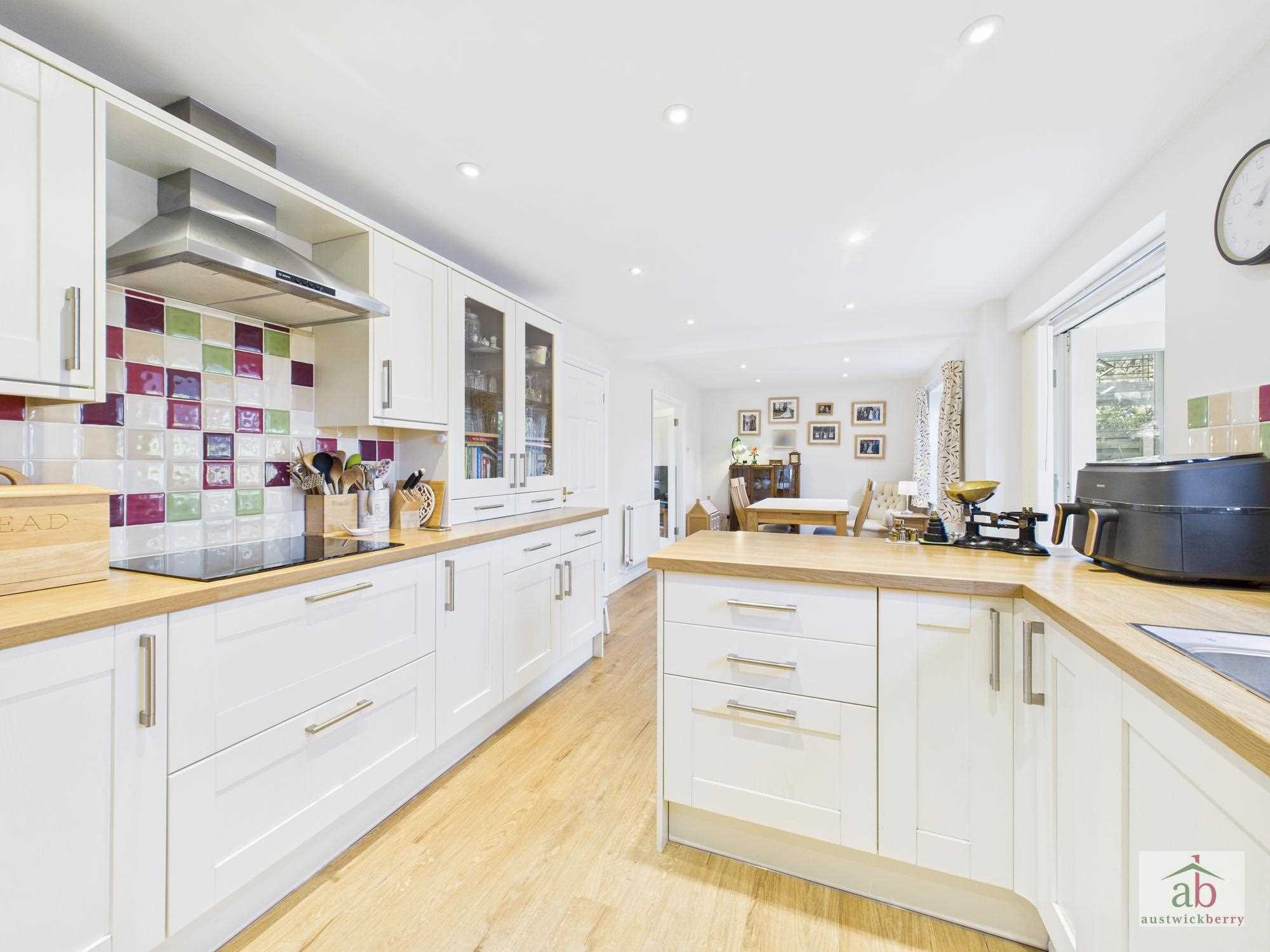Bi-fold doors leading to conservatory. Double glazed window to rear, luxury flooring, glass display cabinets, integrated double oven/hob/extractor, door to utility room, luxury wall tiles, space for dishwasher, stainless steel sink and drainer set in work surfaces, further double glazed window overlooking rear garden, breakfast bar, wall mounted cupboards, large pan drawers.
