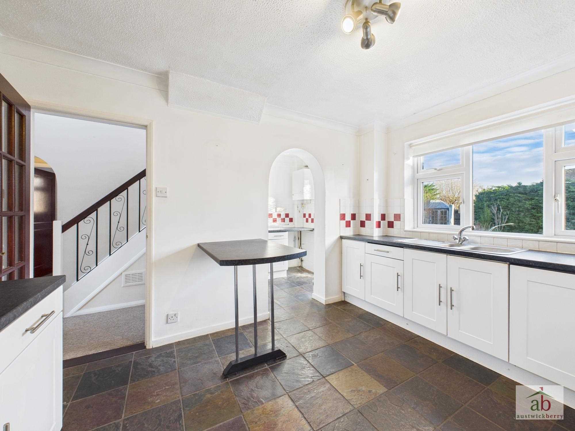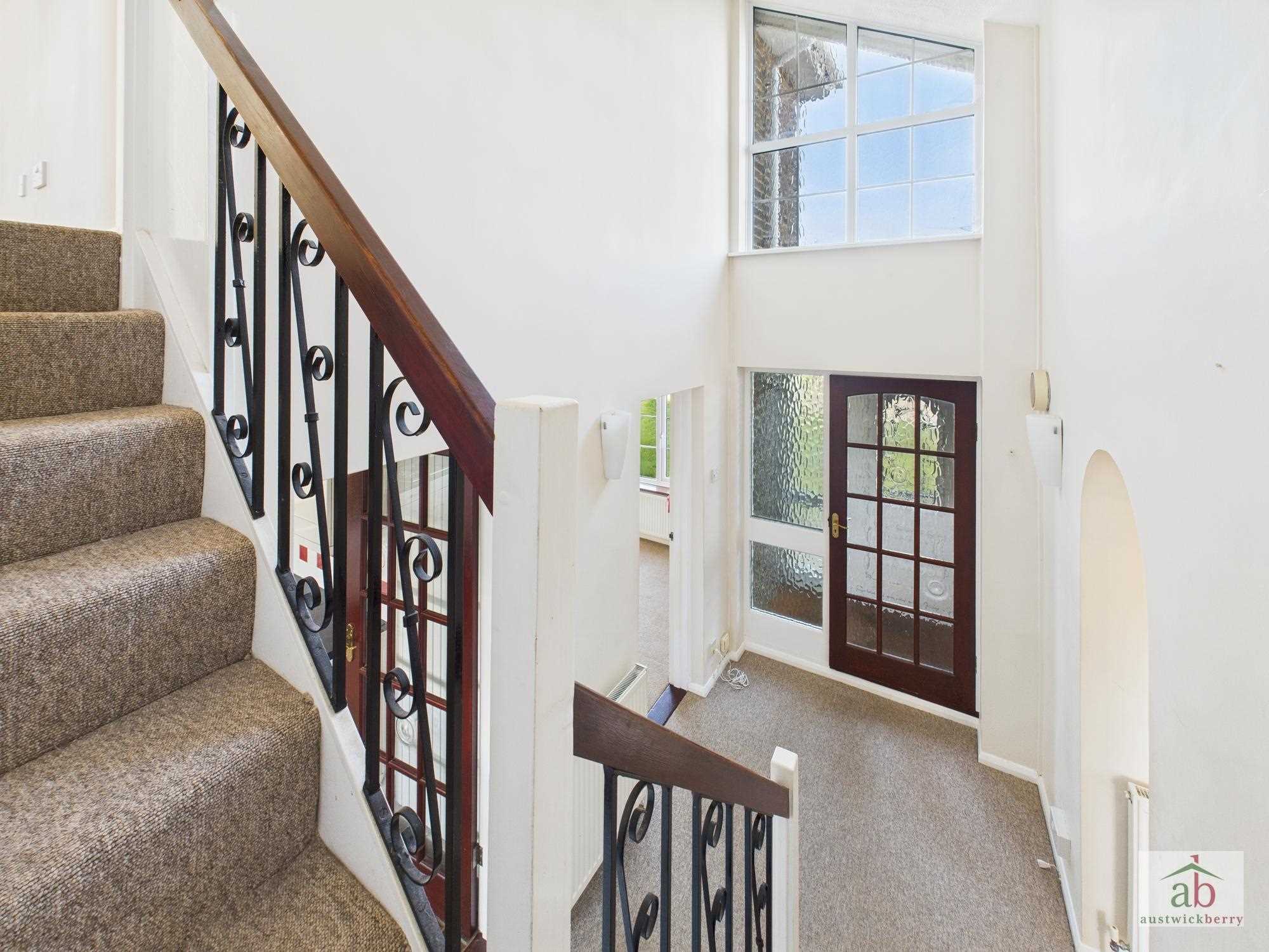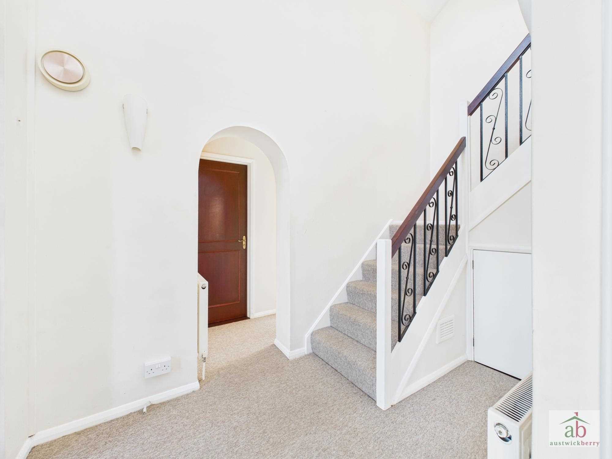 The property is approached via a large driveway providing ample off-road parking and leading to a double-width garage. Upon entering, you are welcomed by an entrance hallway featuring a vaulted ceiling.