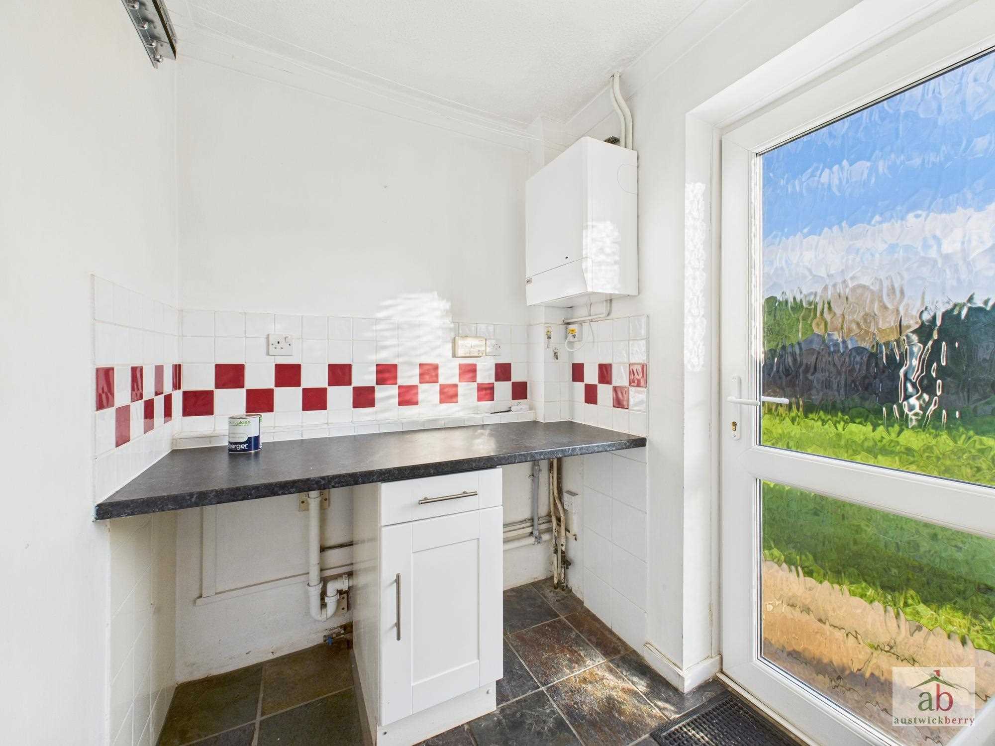 Double glazed door to rear, wall mounted gas boiler, double glazed door to rear, work surfaces, single radiator, space for fridge and freezer.