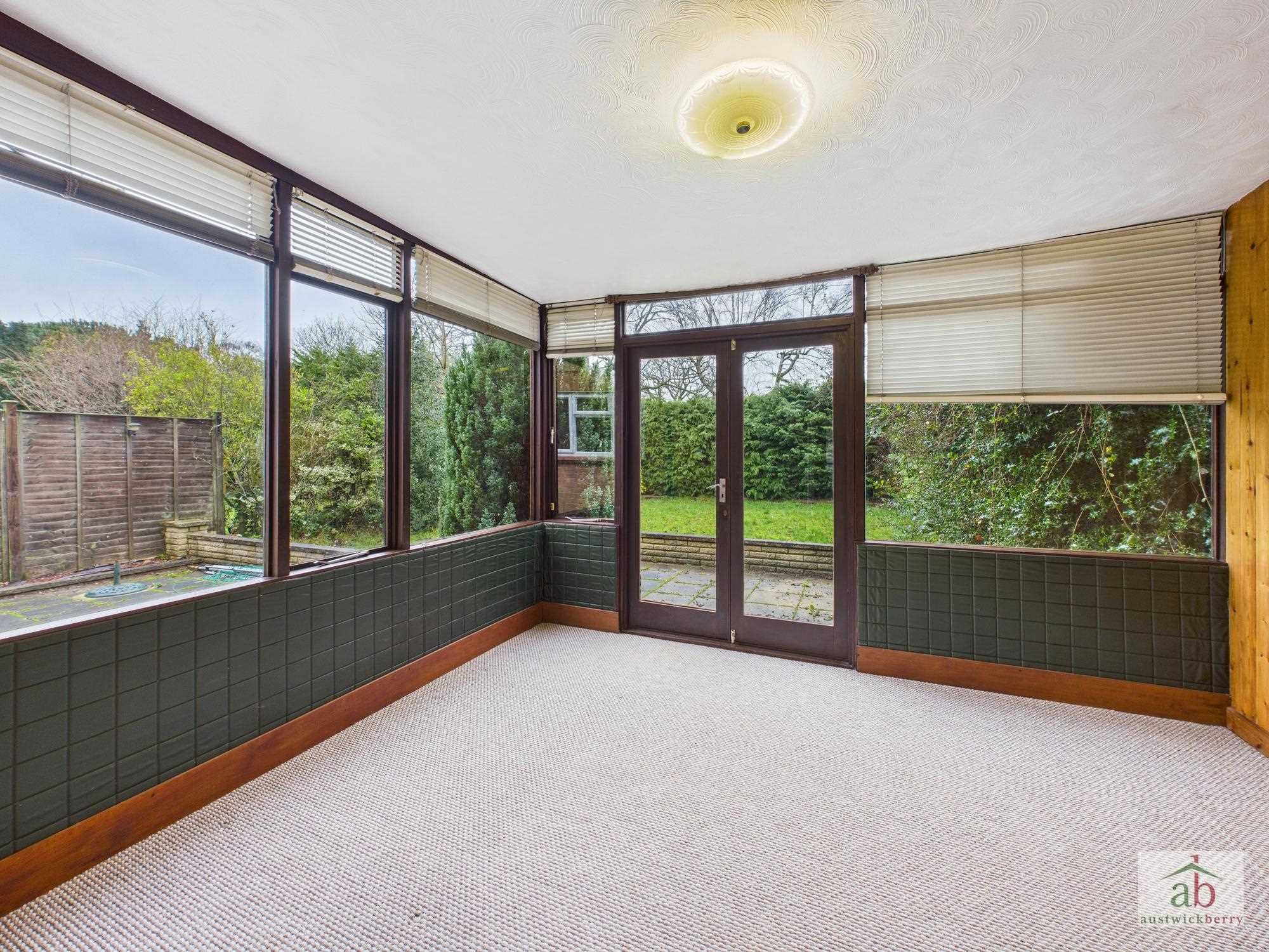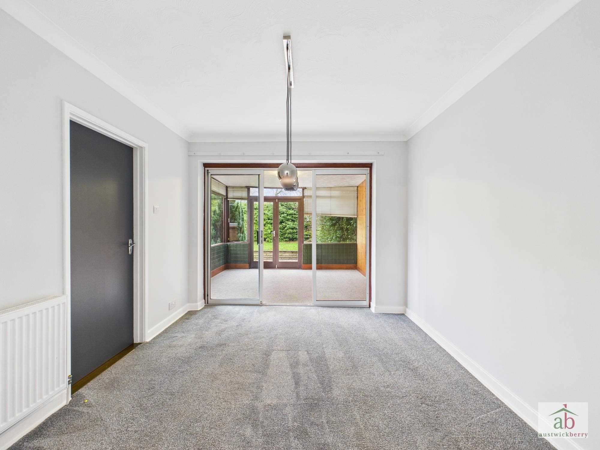 Double glazed sliding door onto sun room, single radiator, door into kitchen.