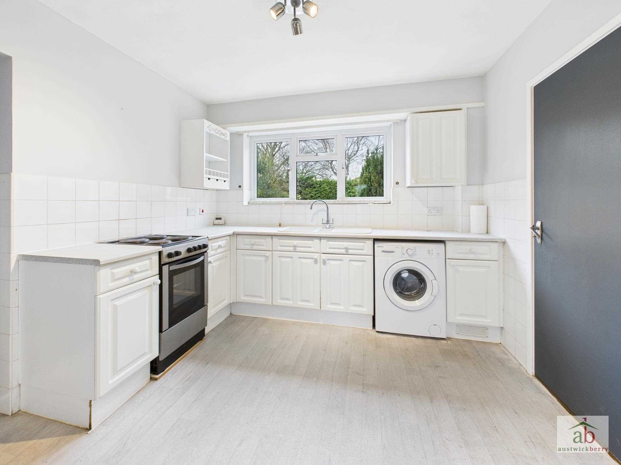 Double glazed window to rear, one and a half sink and drainer with stainless steel mixer tap, work surface with wall and base units above and below, electric cooker point, plumbing for washing machine, space for fridge, tiled splashbacks.