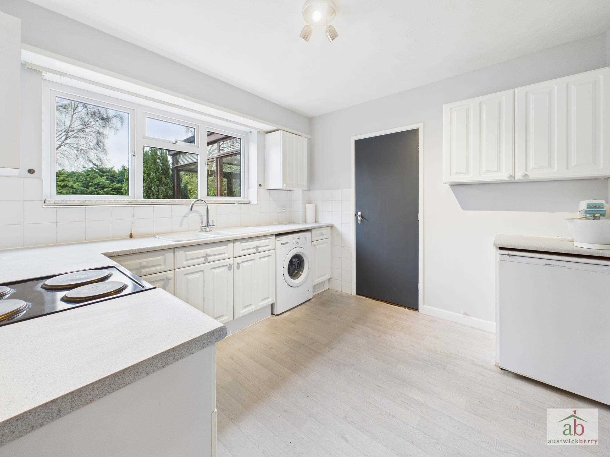 Double glazed rear door onto garden, large storage cupboard, door into garage and downstairs cloakroom.