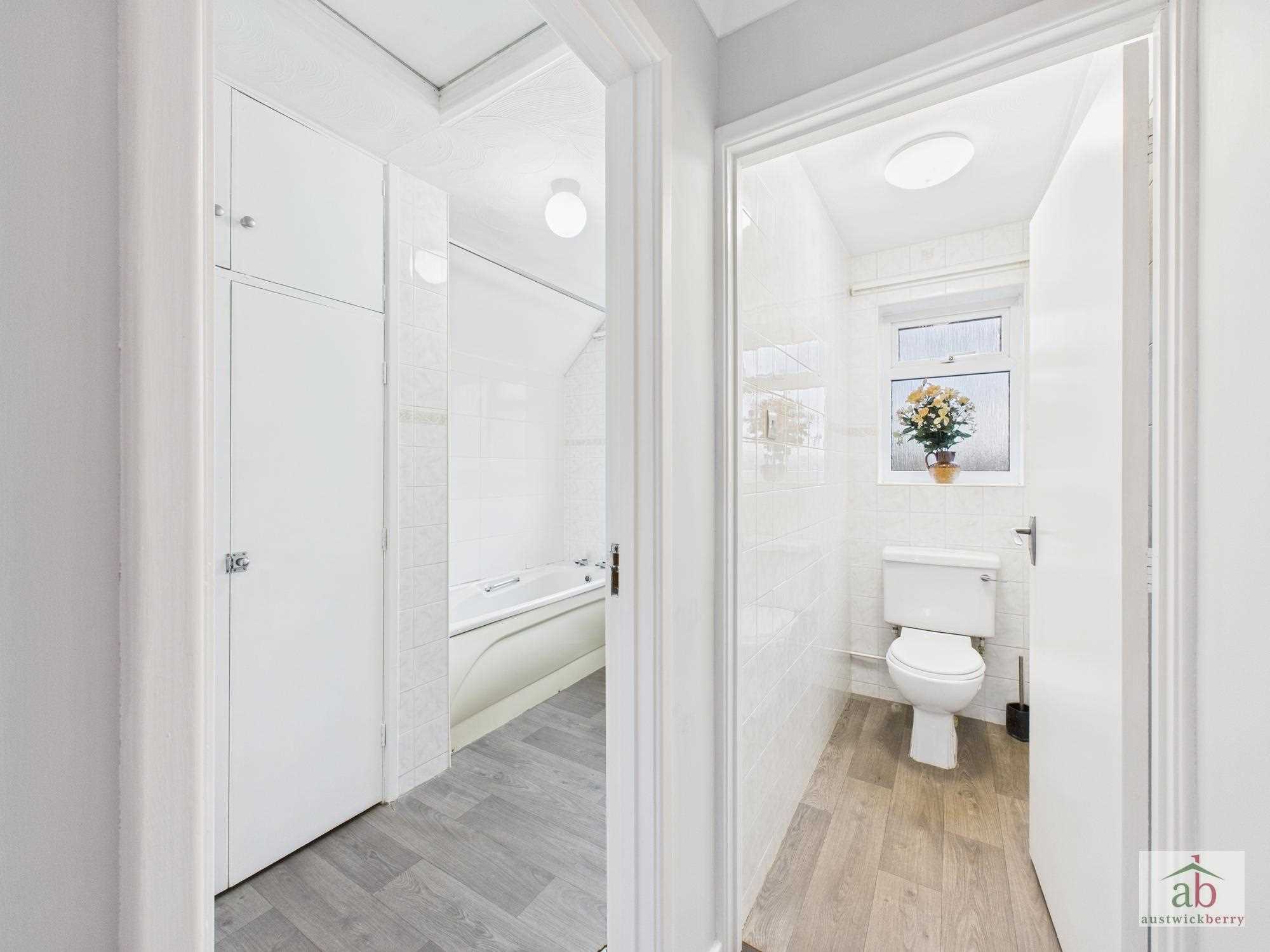 Double glazed window to rear, pedestal hand wash basin, panel enclosed bath with shower over, large airing/boiler cupboard, heated towel radiator.