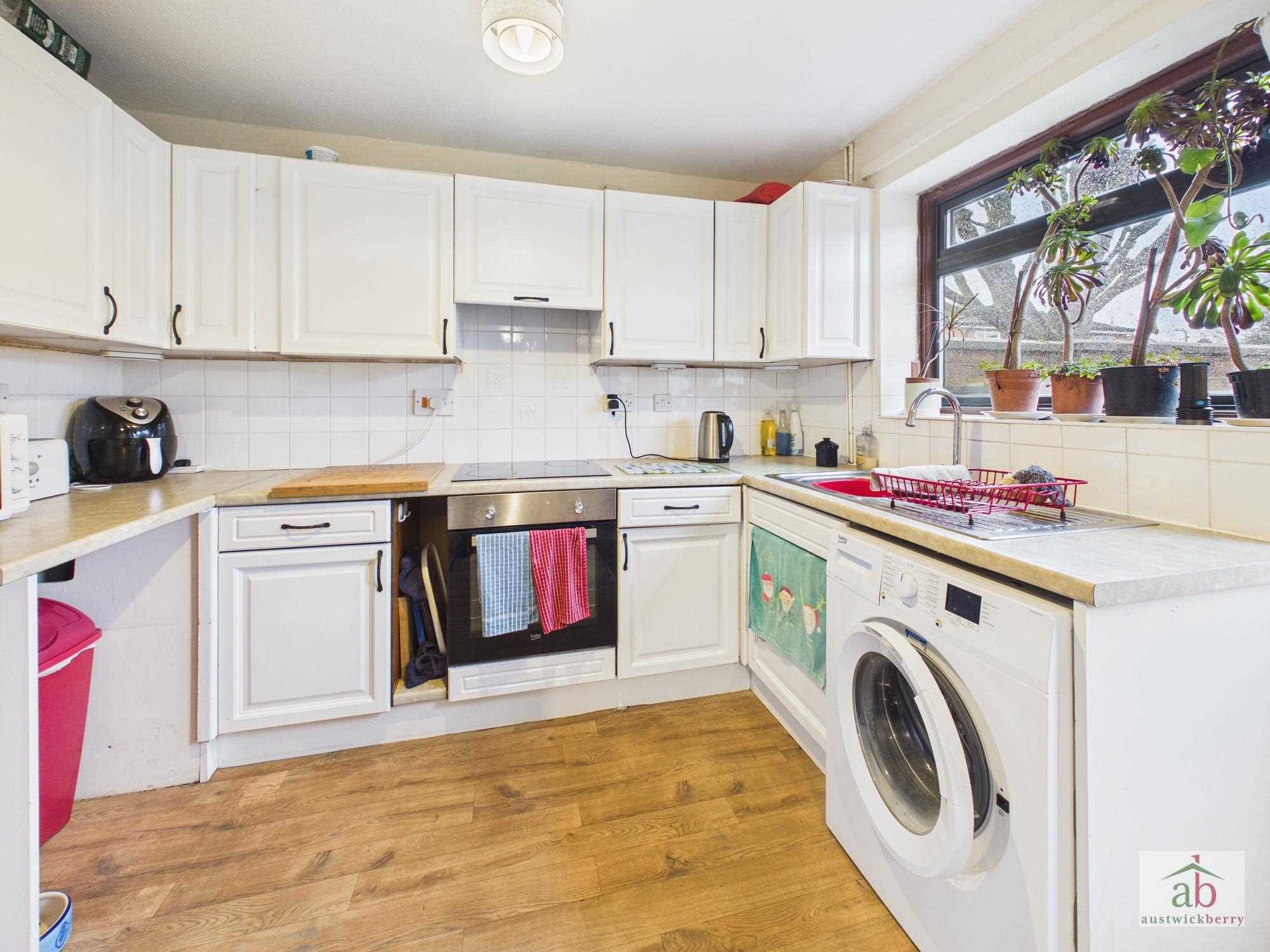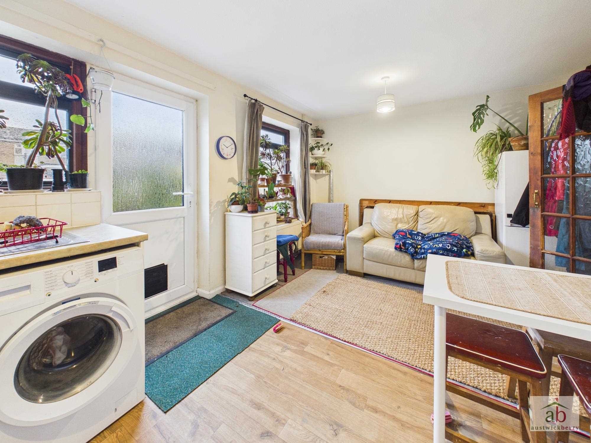 Double glazed window to rear x2, double glazed rear door into garden, double radiator, space for dining table, storage cupboard, stainless steel sink and drainer unit with mixer tap, plumbing for washing machine, electric hob with electric oven beneath, work surface with fitted matching wall and base units above and below.