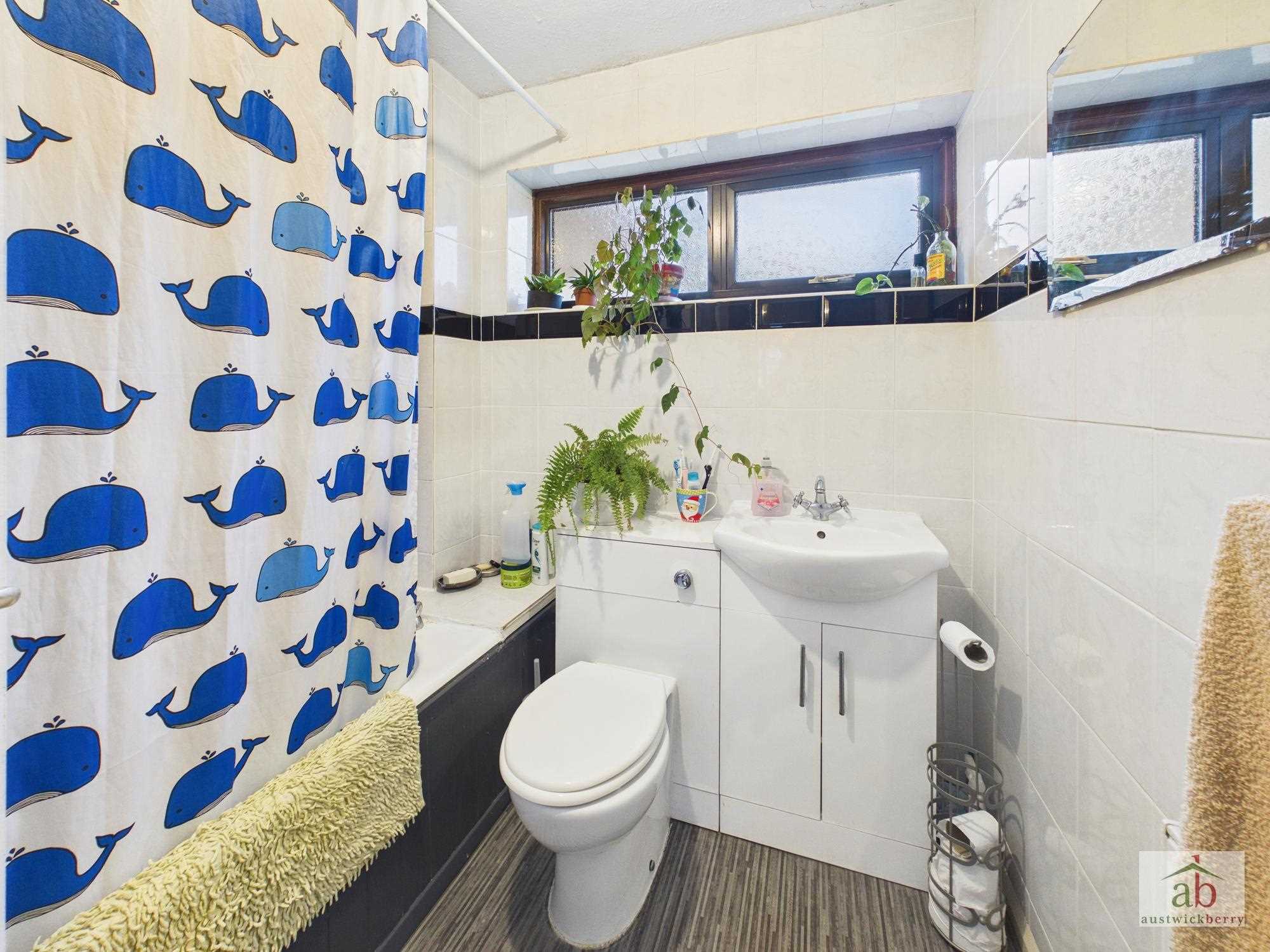 Double glazed window to front, vanity hand wash basin, low level wc, panel enclosed bath with shower attachment over, tiled splashbacks, single radiator.
