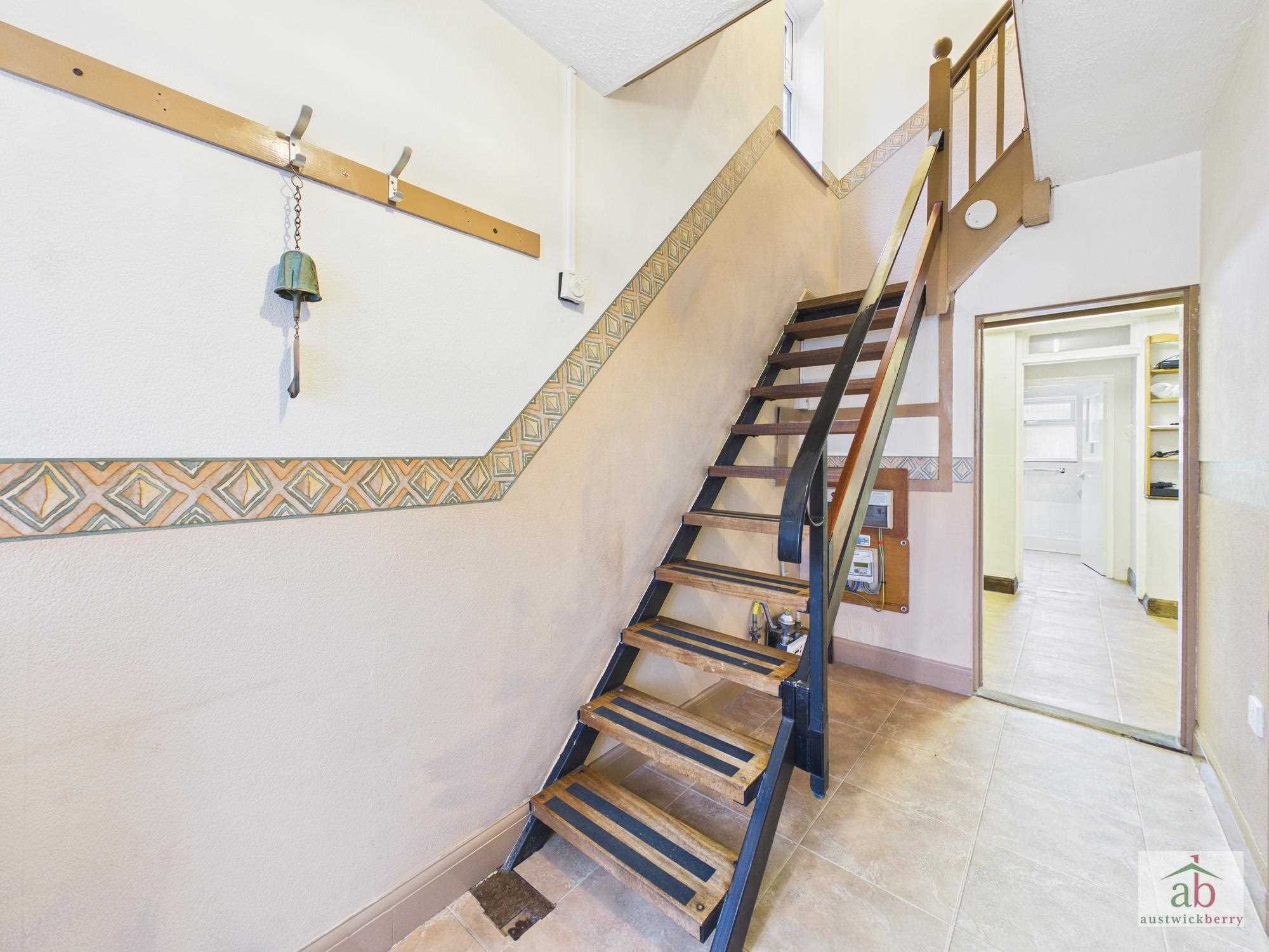 Double glazed door to storm porch with further double glazed door leading to entrance hallway, double radiator, stair flight to first floor.