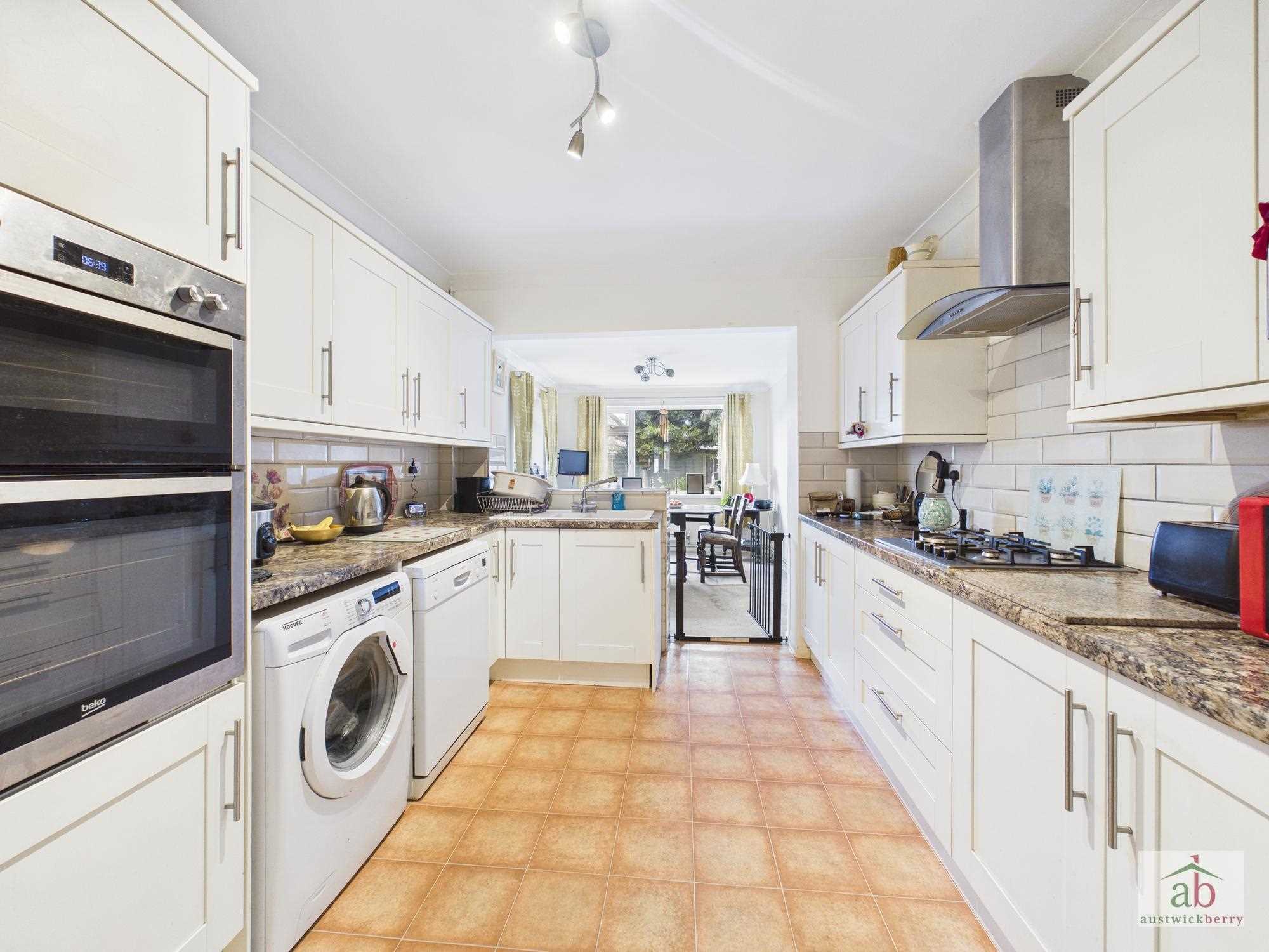 The well-fitted kitchen is open plan to a large dining area, which in turn opens into a conservatory overlooking the private, unoverlooked rear garden.