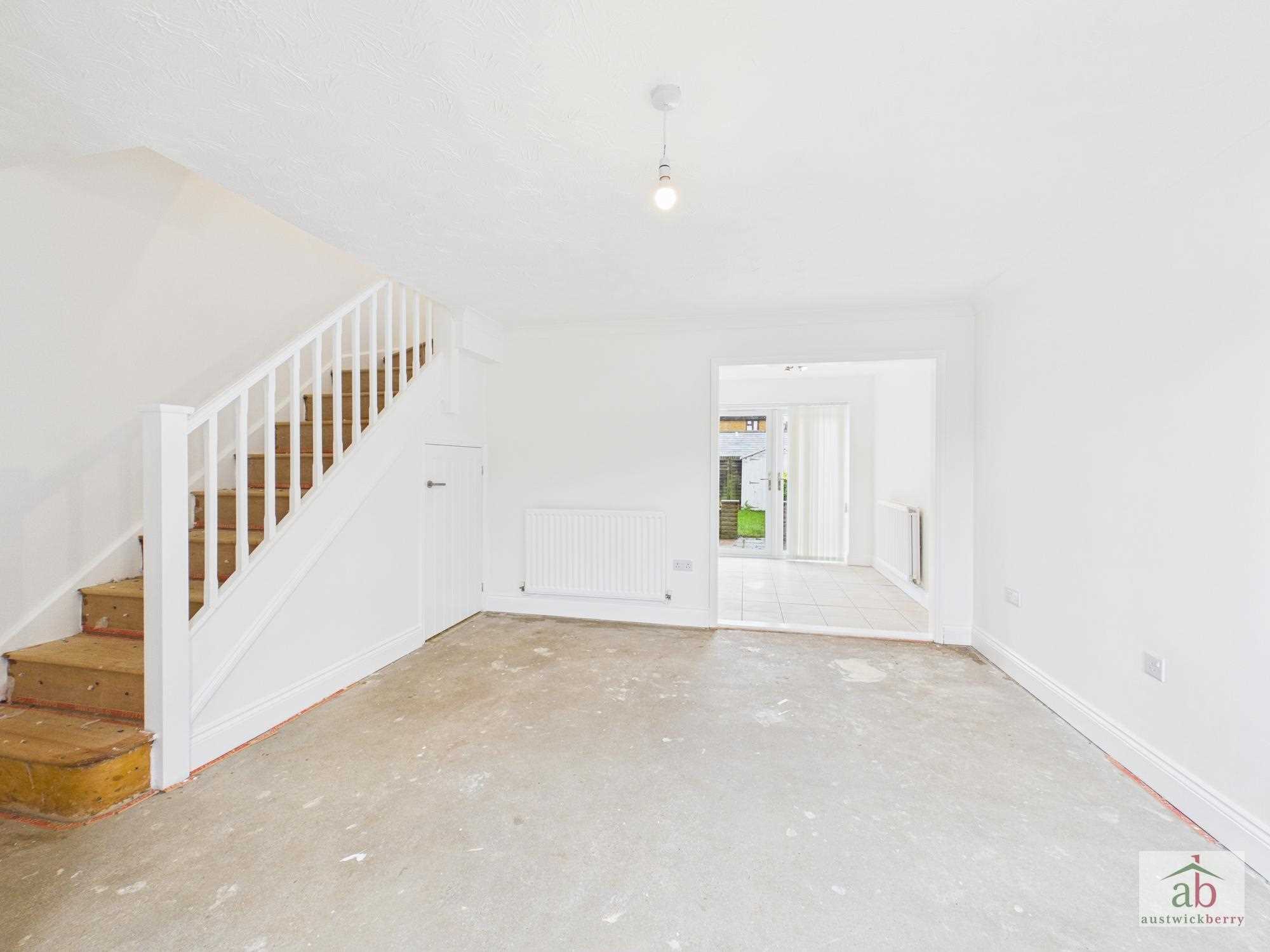 Double glazed window to front, stair flight to first floor, single radiator, cupboard under stairs. Open plan to kitchen/diner.
