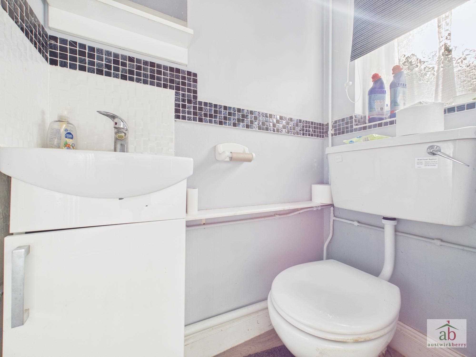 Double glazed window to front, low level wc, vanity hand wash basin, half tile surround.