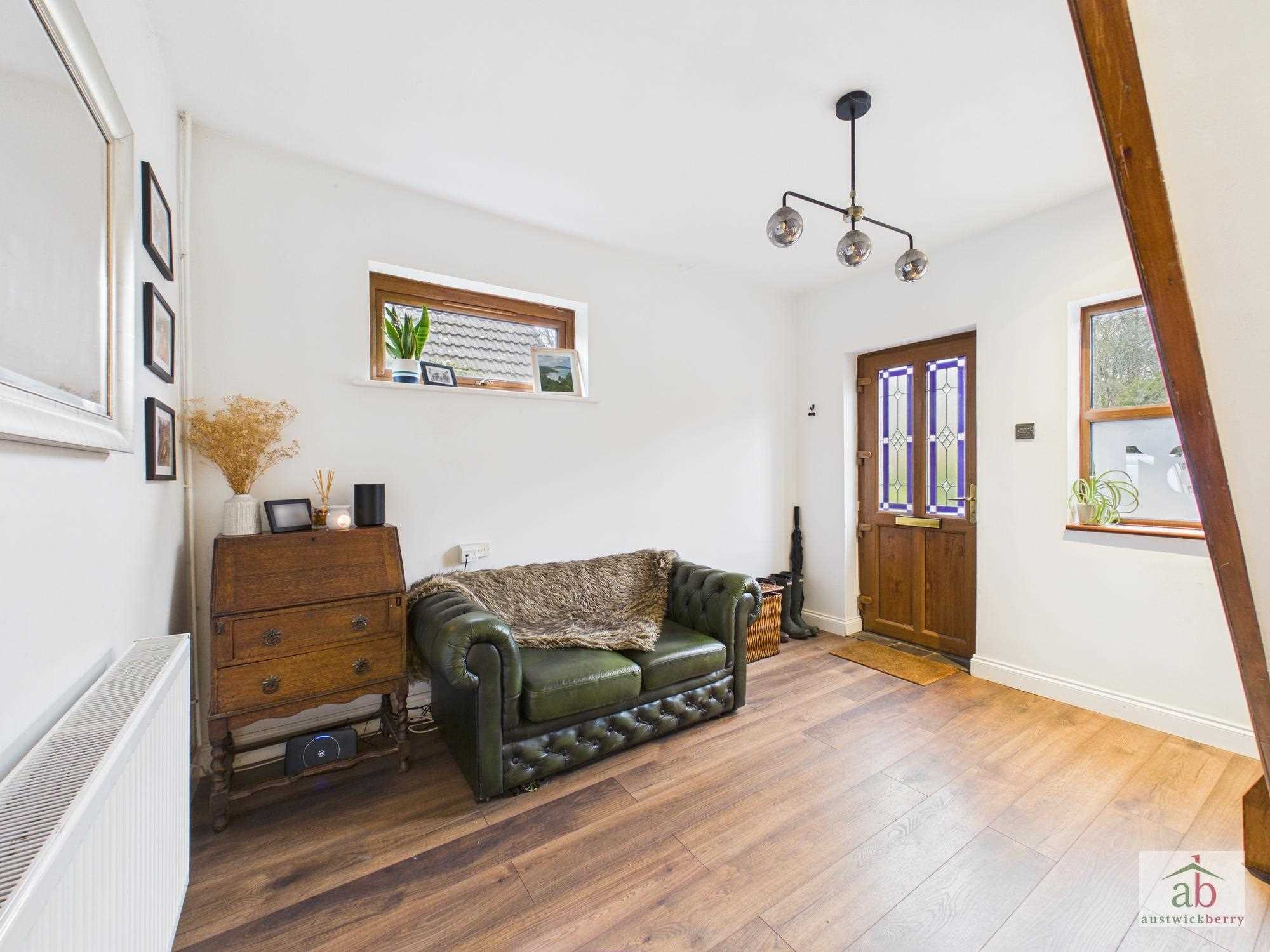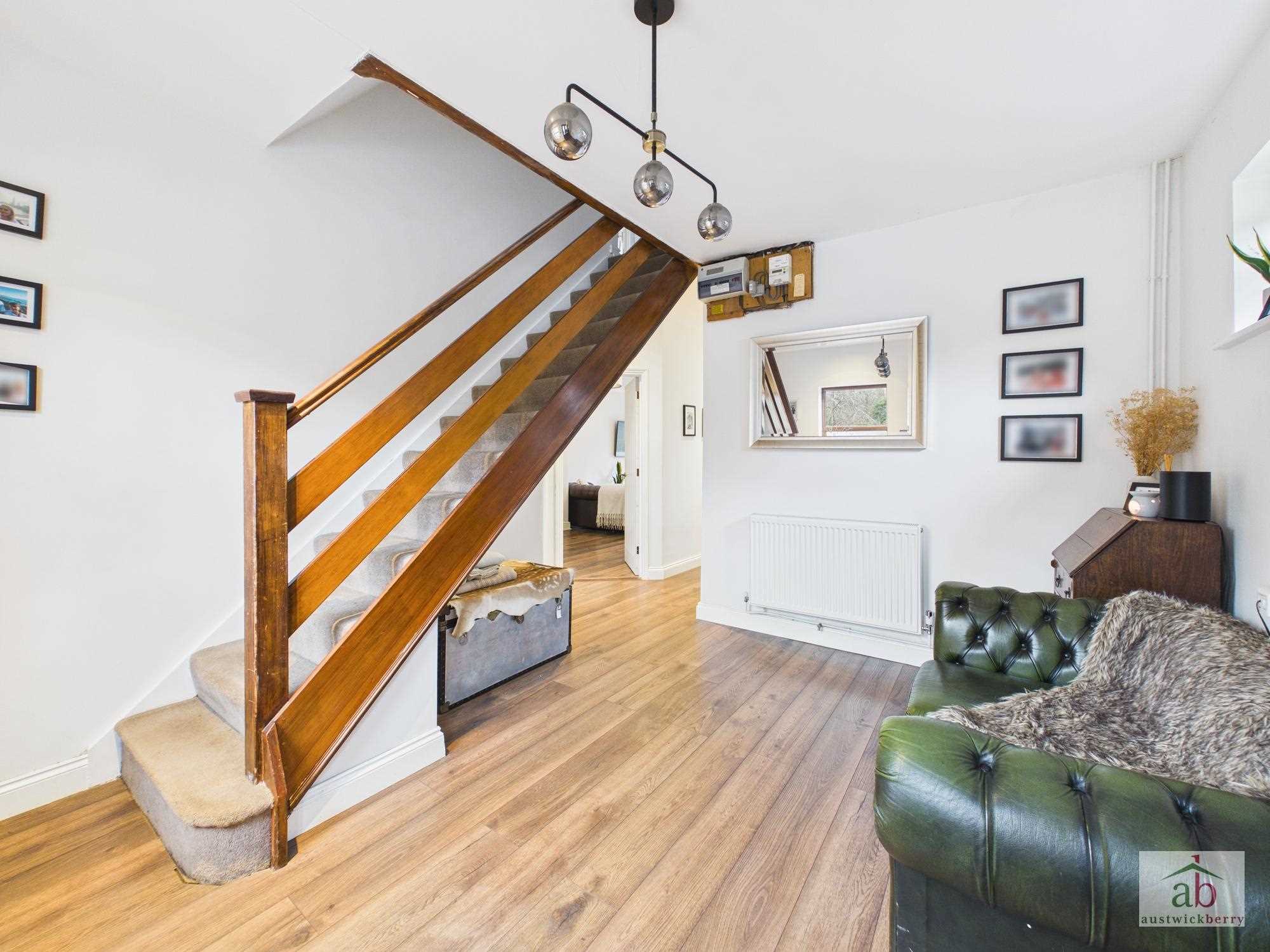 Double glazed door to entrance hallway, large double glazed feature window to front aspect, double glazed window to side, single radiator, stair flight to first floor, luxury flooring.