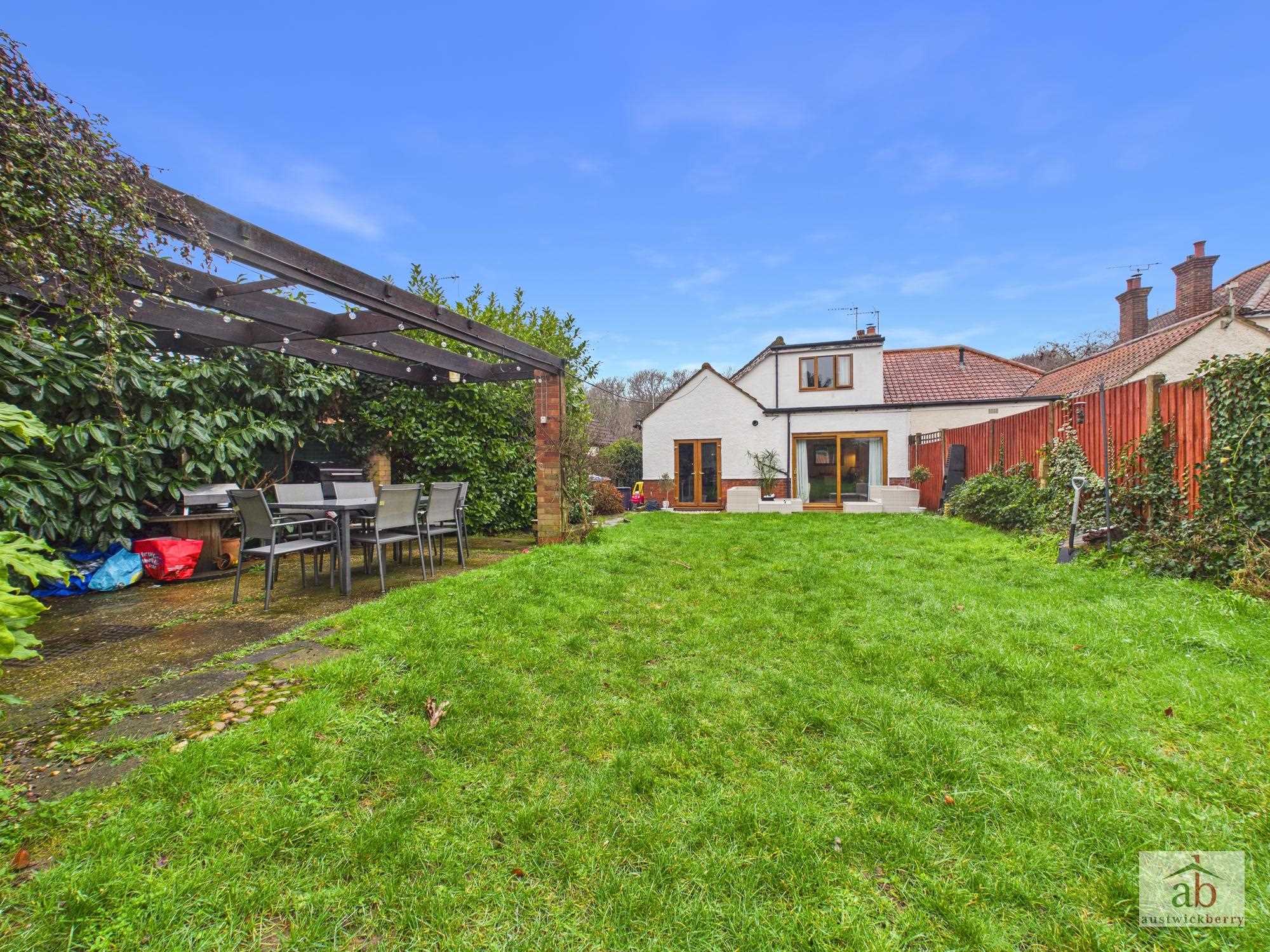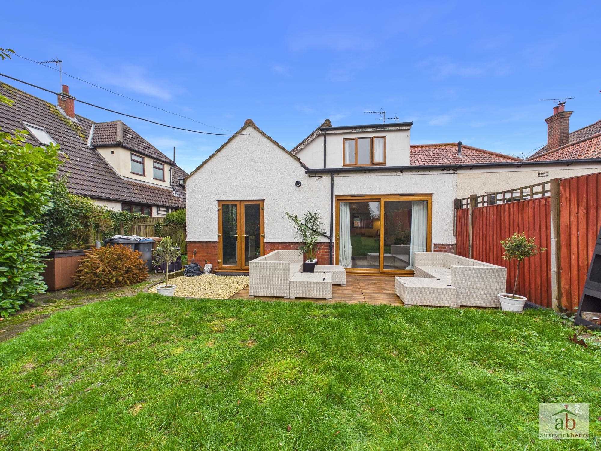 A beautifully presented THREE DOUBLE BEDROOM semi-detached chalet-style family home, perfectly positioned on an outstanding large south-facing plot.
