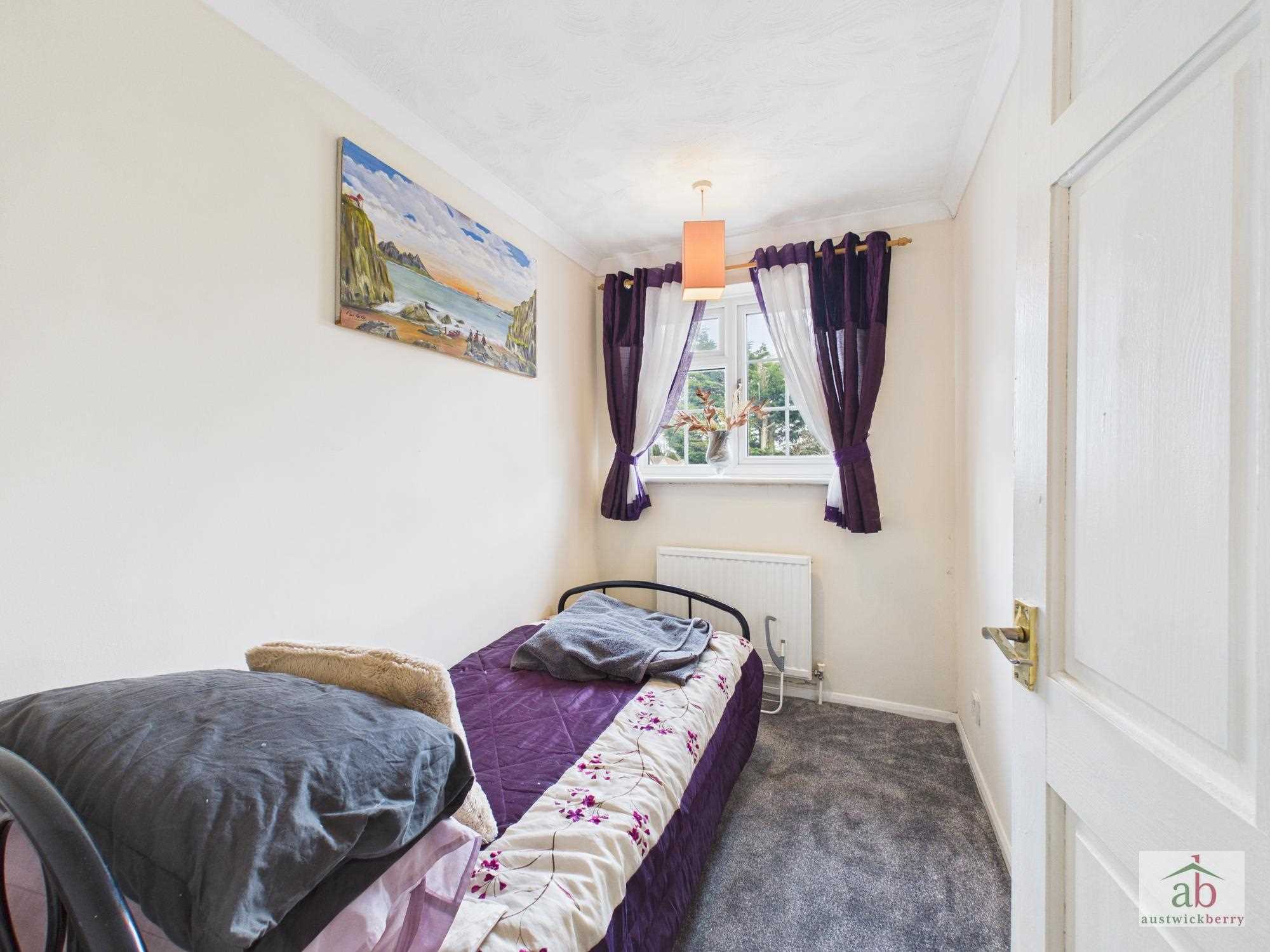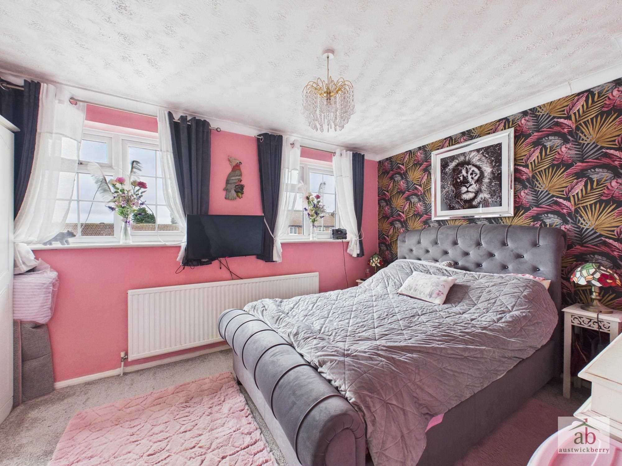Double glazed window to front x2, single radiator, feature wallpaper wall, built in cupboard, wardrobe recess.