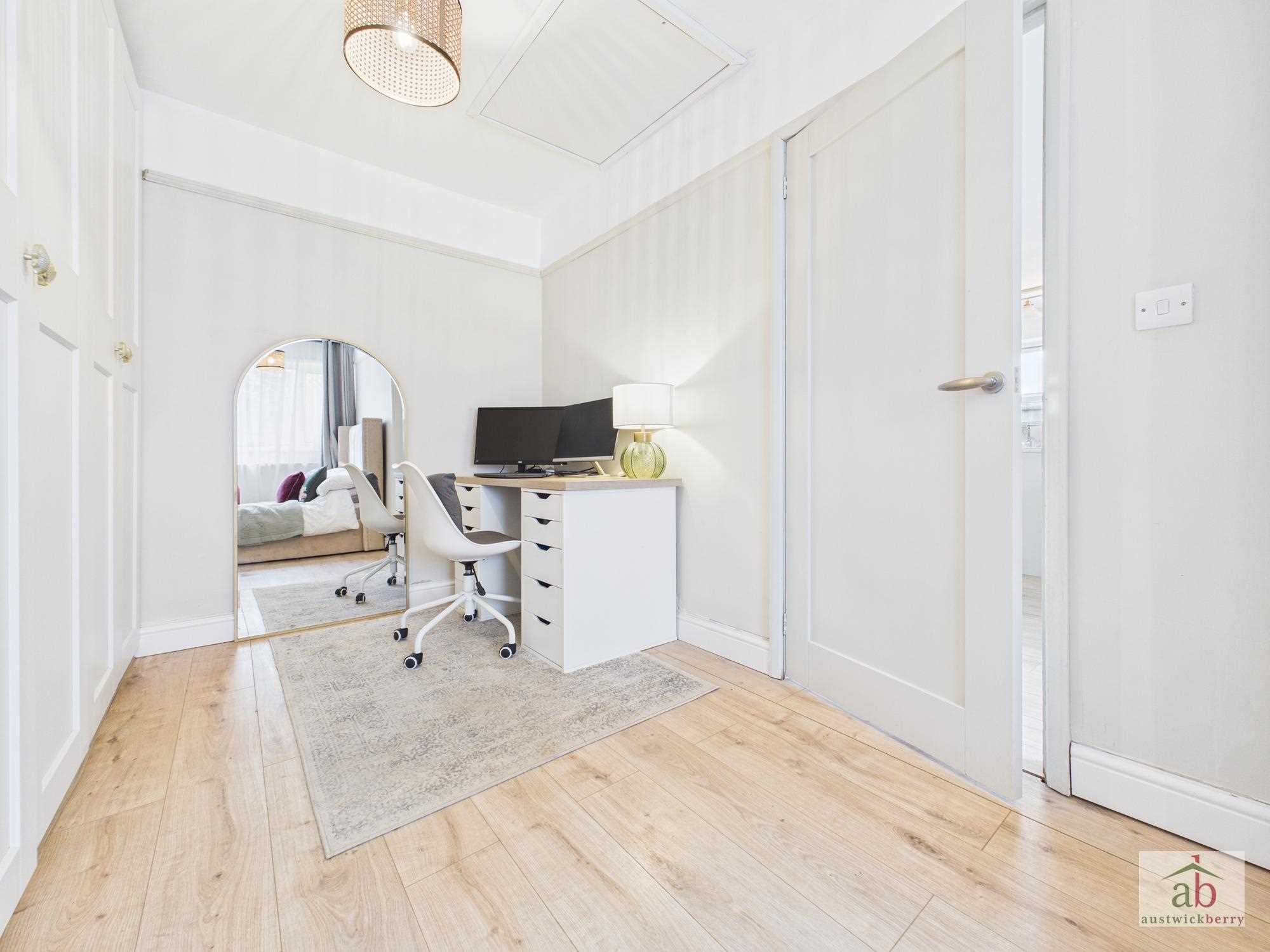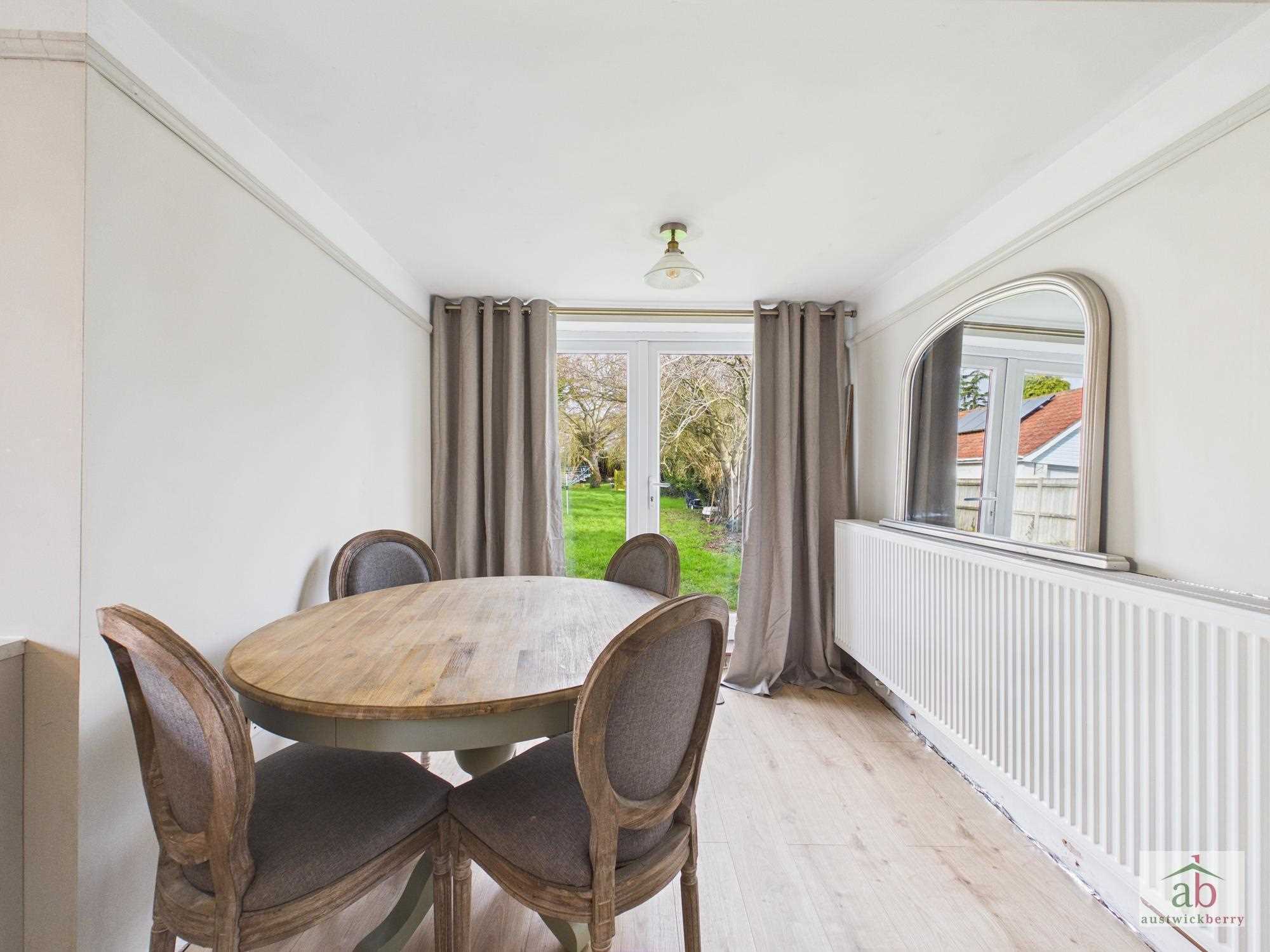 Double glazed doors overlooking rear garden, single radiator, fitted cupboards. Luxury refitted kitchen with double glazed window to side, contemporary work surfaces, inset sink with mixer taps, cupboards under, integrated hob/oven, integrated dishwasher, contemporary splashbacks, integrated fridge freezer, breakfast bar return.