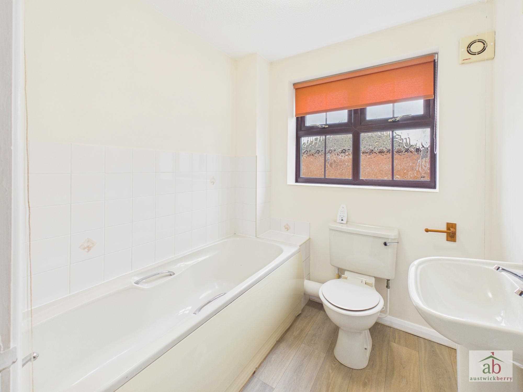Double glazed window to rear, pedestal hand wash basin, low level wc, panel enclosed bath, tiled splashbacks.